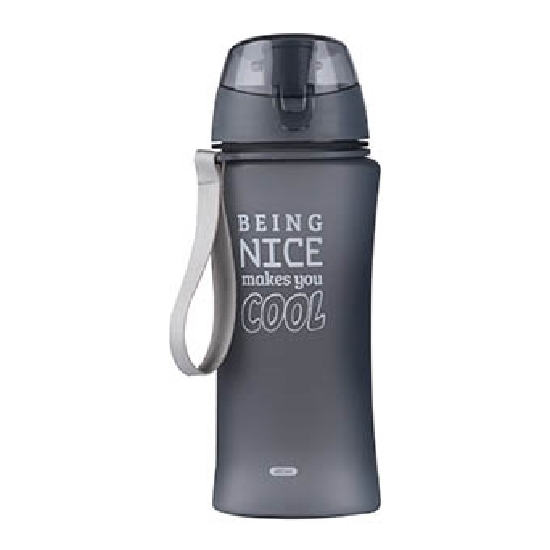 Sport bidon water drinkfles met inhoud van 480 ml in het grijs. Bidon met sportdop en opdruk van de tekst: Being nice makes you cool. Handige herbruikbare drinkbeker/drinkbus om mee te nemen naar school/werk of voor tijdens het sporten.