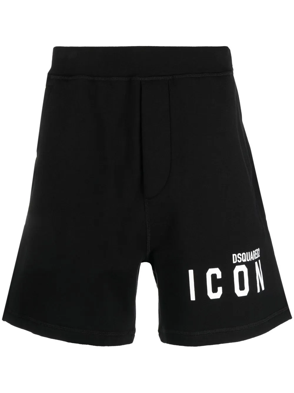 Noir, coton, logo imprimé sur le devant, ceinture élastique, deux poches latérales fendues, hauteur genou.