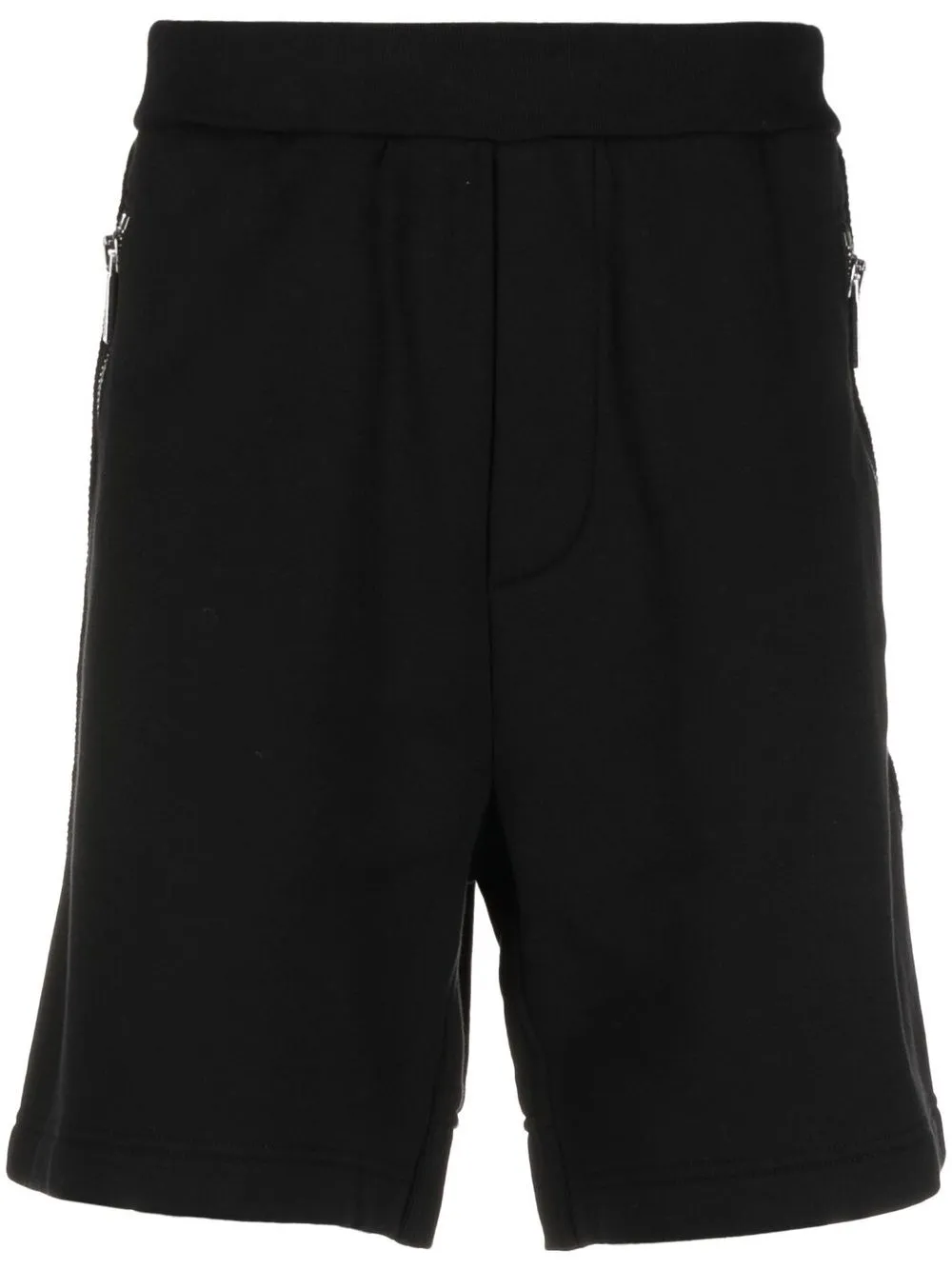 Noir, coton, logo imprimé à l’arrière, deux poches latérales zippées, ceinture élastique, hauteur genou.