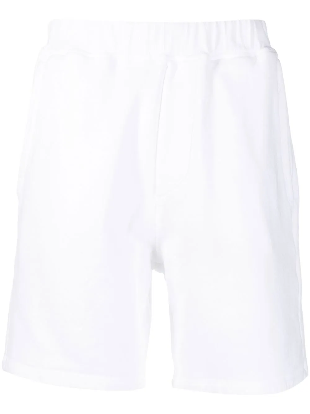 Coton stretch, logo imprimé à l’arrière, ceinture élastique, poches latérales fendues, ourlet droit, longueur au dessus du genou.