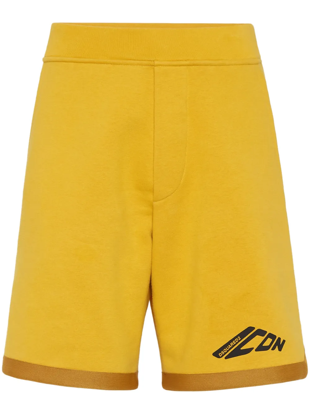 jaune coton texture jersey logo imprimé sur la cuisse ceinture élastique liserés en ruban gros-grain