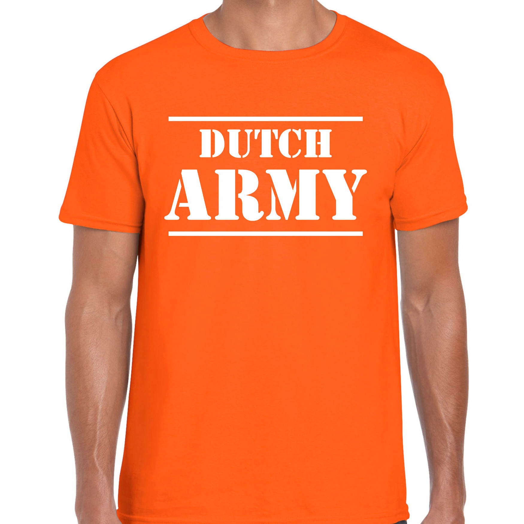 Dutch army/Nederlands leger supporter/race fan t-shirt oranje voor heren – EK/WK tops / Koningsdag outfit. Op dit oranje shirt staat in witte leger-stijl letters de tekst: Dutch army.