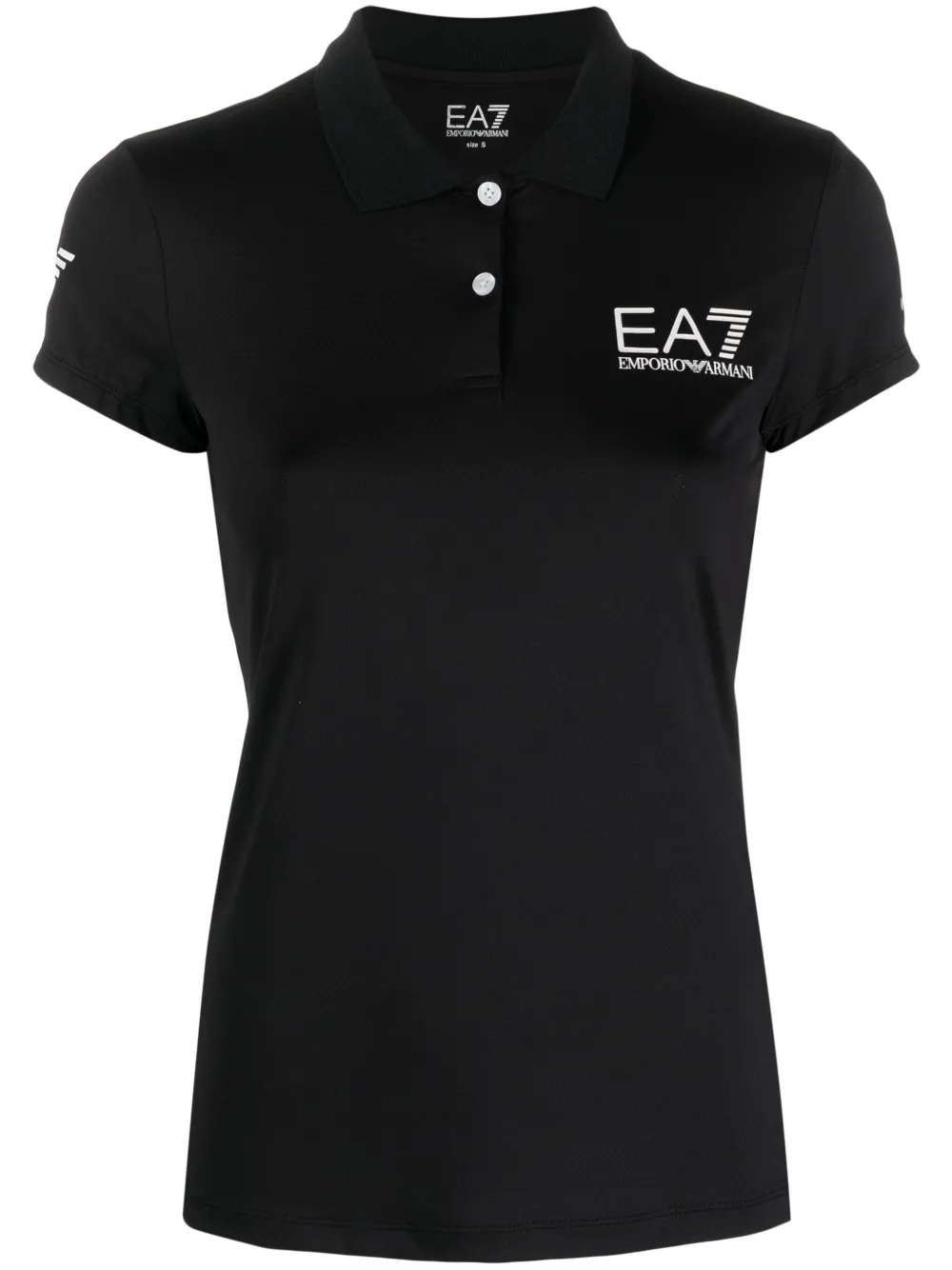 noir design stretch coupe slim structure légère logo imprimé sur la poitrine logo imprimé sur la manche col polo patte de boutonnage sur le devant mancherons ourlet droit