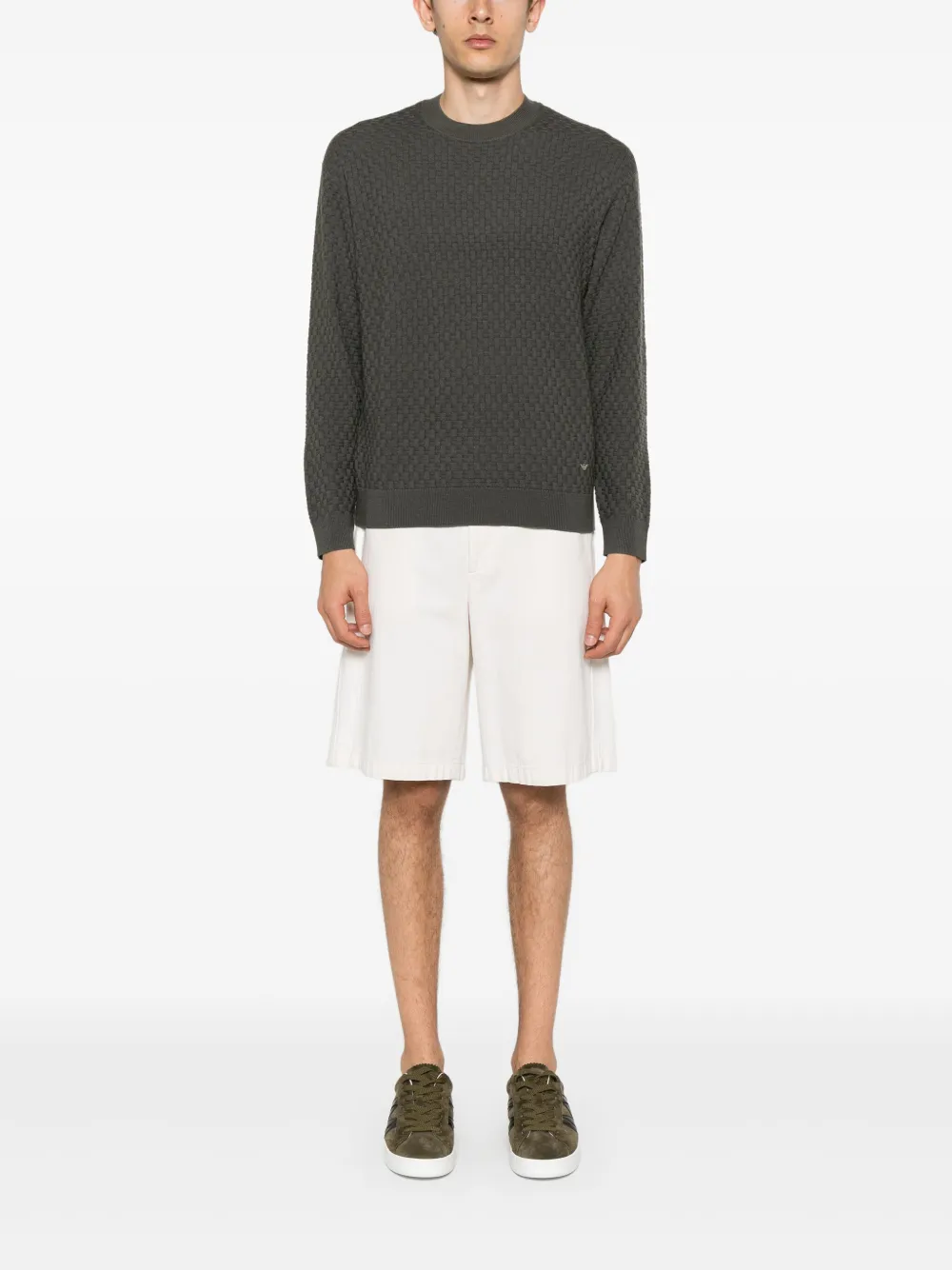 bosgroen scheerwol geweven design geribbelde afwerking ronde hals lange mouwen rechte zoom