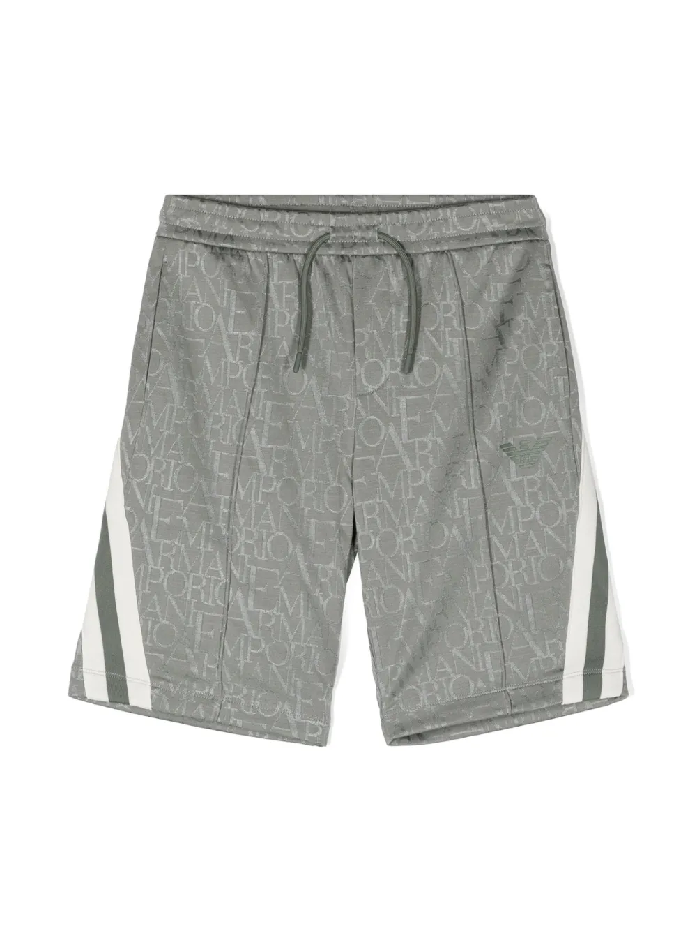 vert sauge motif logo jacquard logo en caoutchouc rayures latérales coutures apparentes taille normale taille élastique à lien de resserrage deux poches latérales passepoilées coupe droite