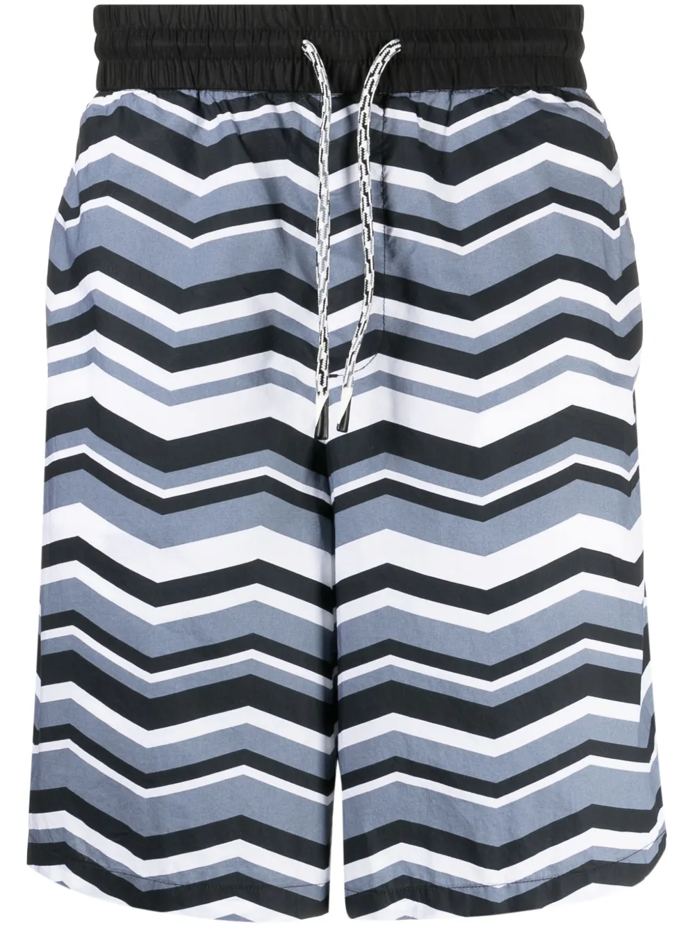 gris coton imprimé zig-zag taille élastique à lien de resserrage longueur genou poches plaquées latérales poches arrière passepoilées ourlet droit