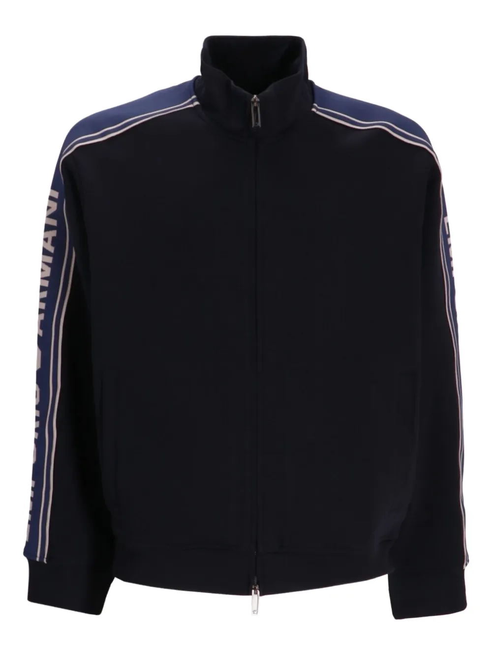 bleu marine fermeture zippée col montant détail de logo manches longues