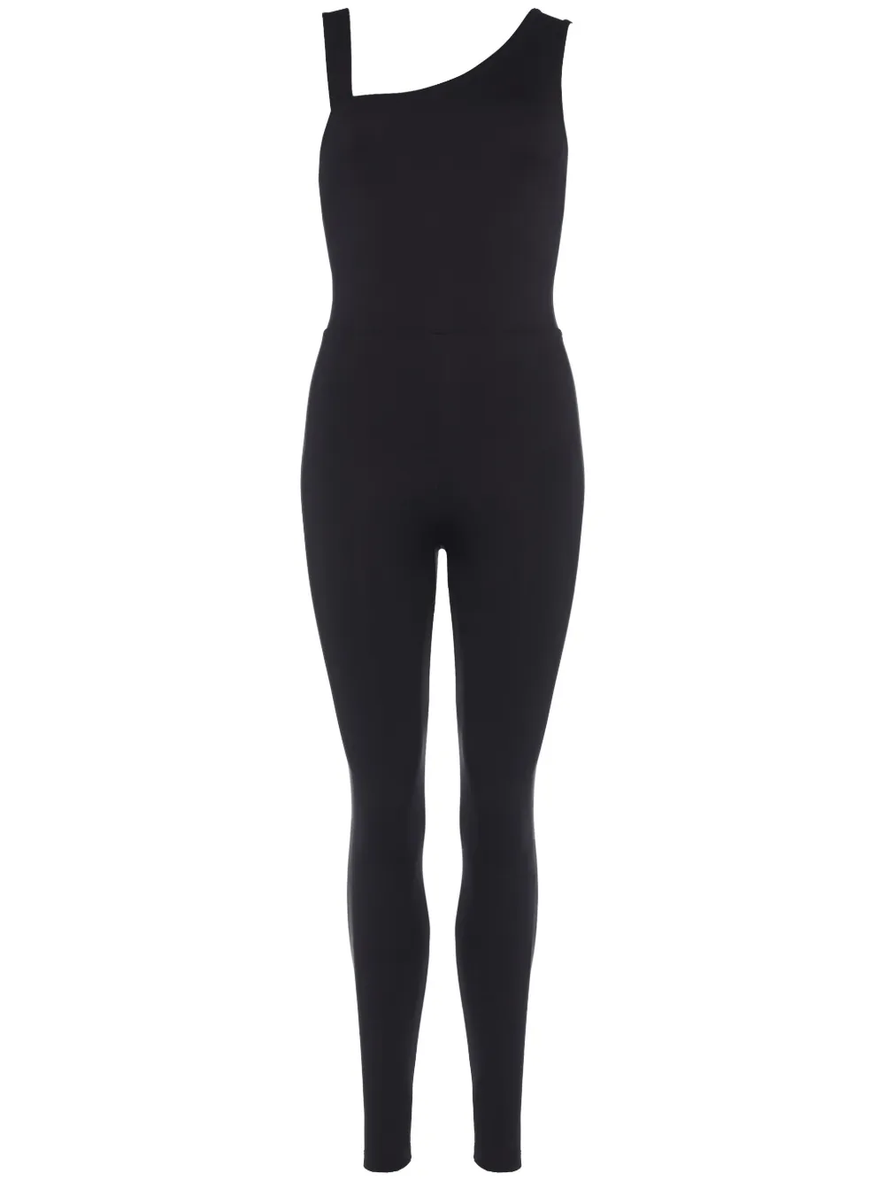 noir design stretch encolure asymétrique design sans manches détails de découpes coupe longue