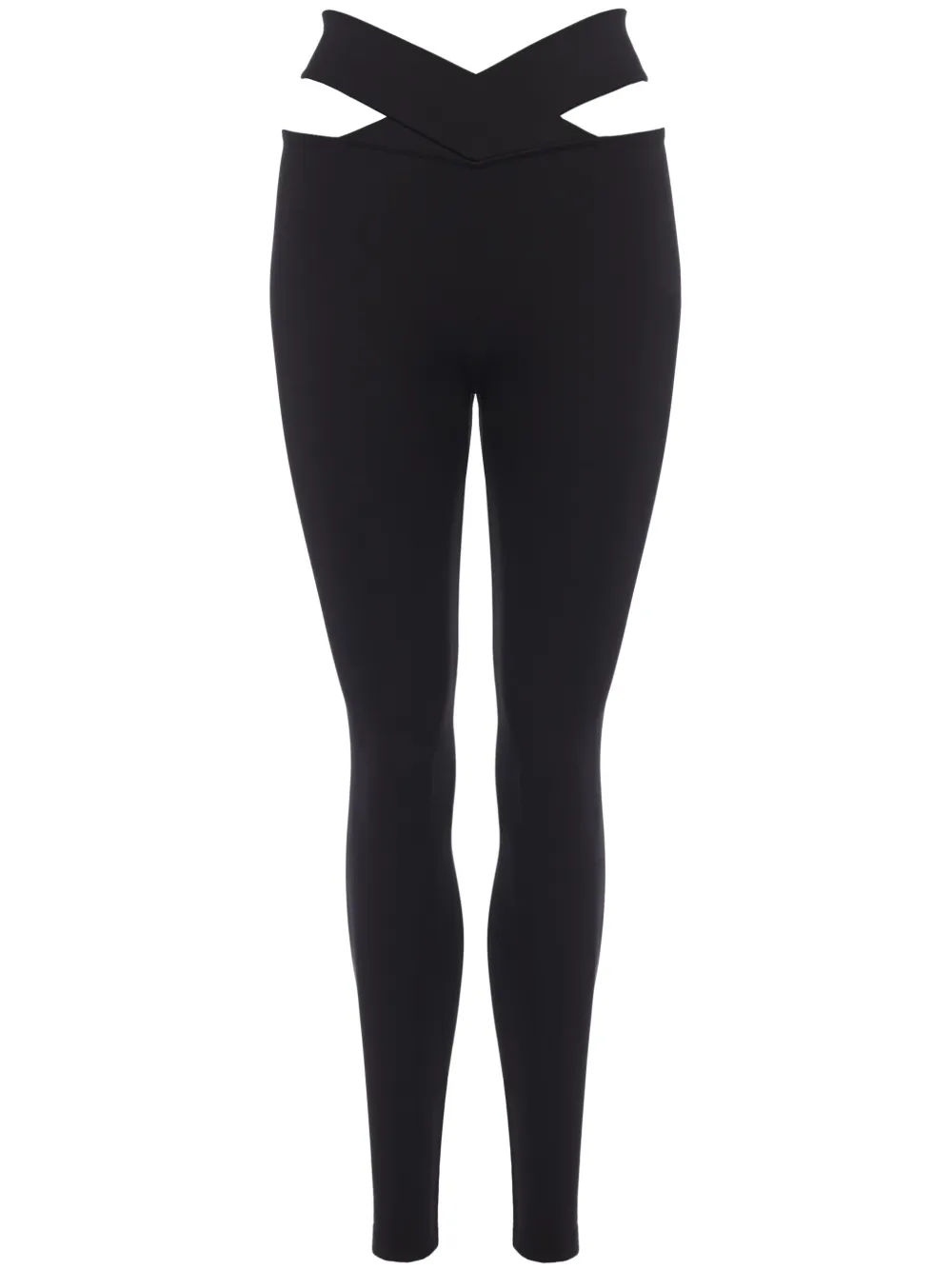 noir jersey stretch taille haute détails de découpes hauteur cheville petit logo ton sur ton brodé à l’arrière coupe super skinny à enfiler