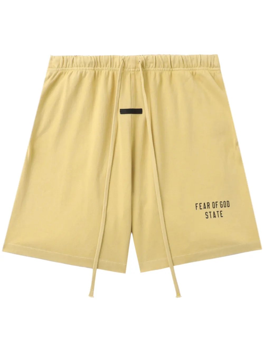 jaune coton texture jersey taille mi-haute taille élastique à lien de resserrage deux poches latérales passepoilées patch logo sur le devant logo imprimé sur le côté coupe droite coupe courte
