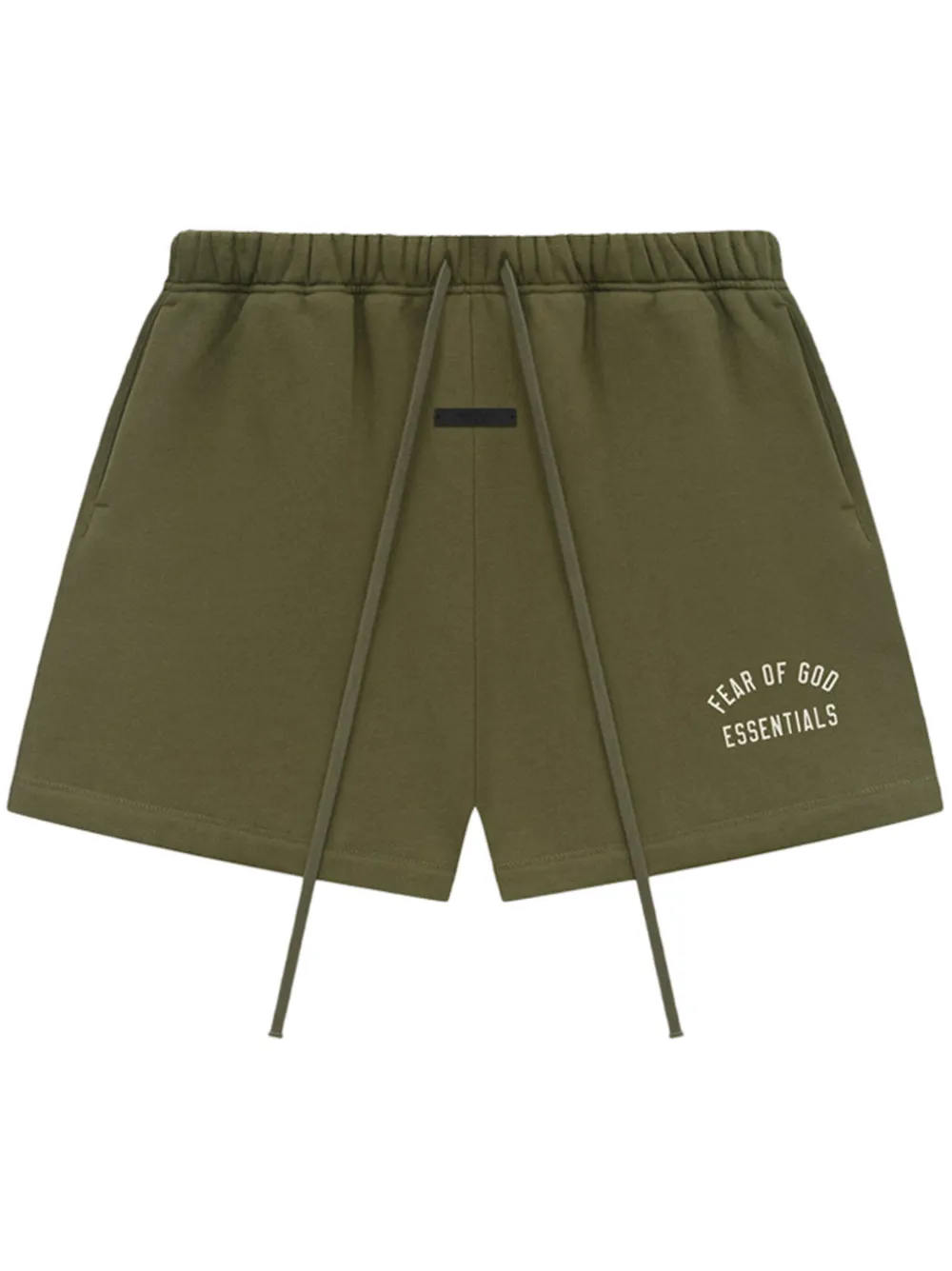 vert sauge coton mélangé logo imprimé sur le devant taille élastique à lien de resserrage deux poches latérales passepoilées coupe courte