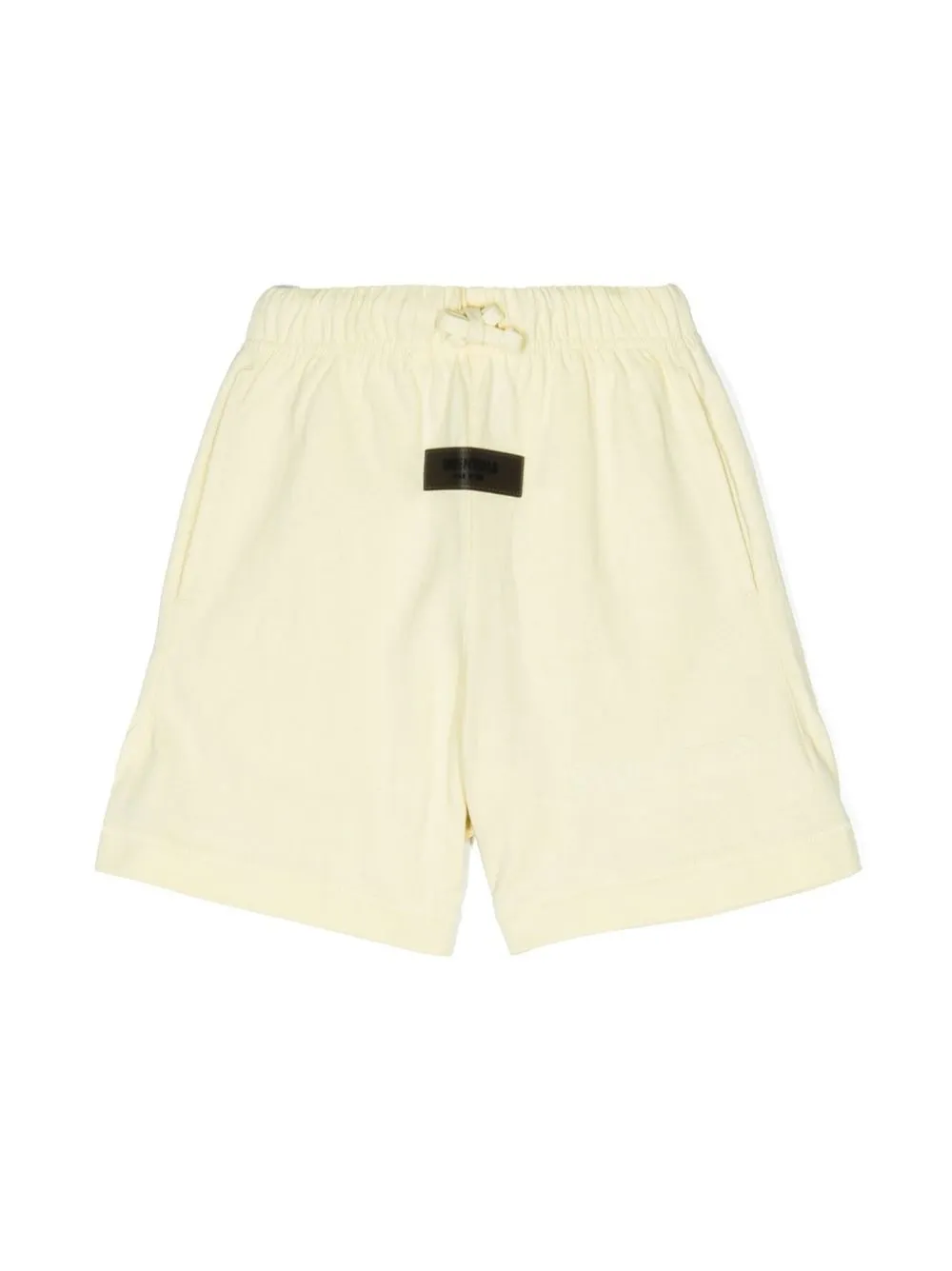 Jaune clair, coton, polaire, patch logo sur le devant, fermeture à lien de resserrage, deux poches latérales fendues.