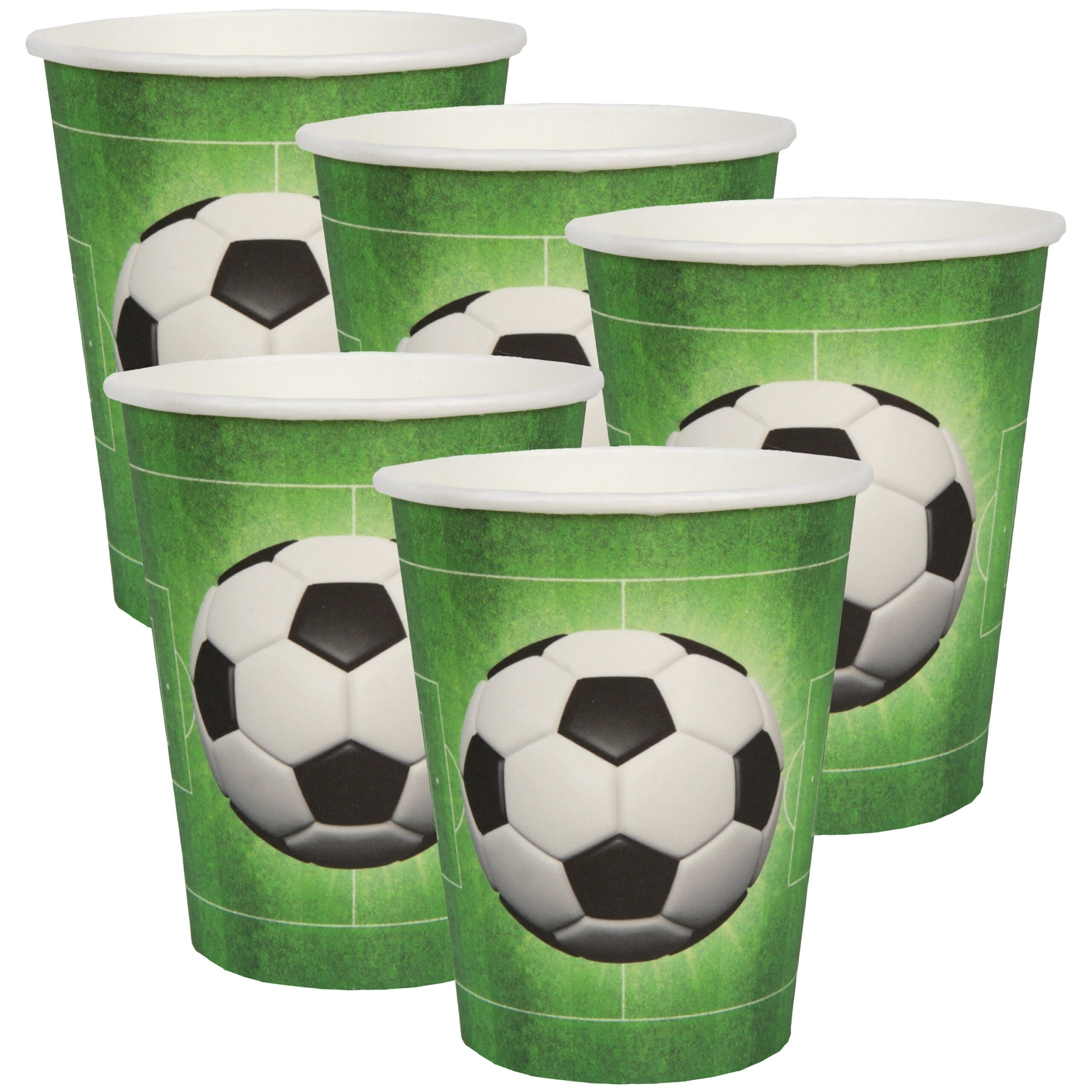 50x Santex feest wegwerp bekertjes. Wegwerp party bekertjes van stevig karton, met de opdruk van een voetbal en voetbalveld.