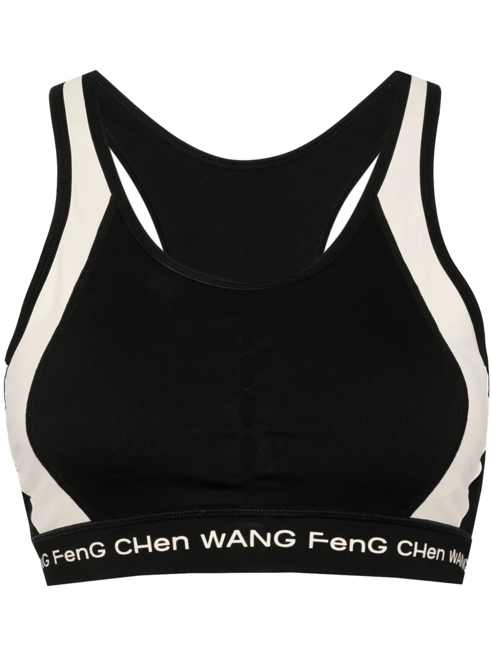 noir/blanc bordure contrastante encolure arrondie design sans manches dos nageur rembourrage amovible ourlet élastiqué bride à logo imprimé ourlet droit