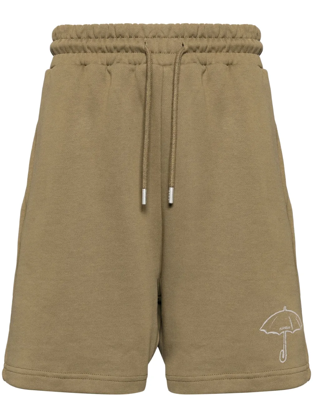 marron kaki coton logo imprimé sur le devant taille élastique à lien de resserrage poches latérales fendues poche arrière plaquée