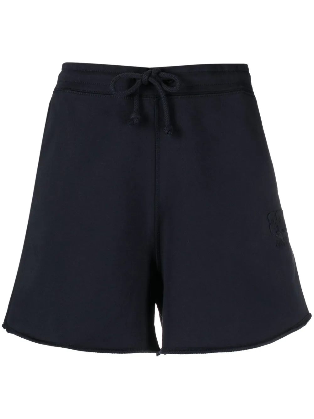 bleu nuit coton biologique design en maille bord frangé logo brodé sur le devant taille élastique à lien de resserrage poches latérales fendues coupe droite longueur au dessus du genou doublure en éponge Pour en savoir plus sur ce qui rend un produit responsable, consultez notre page critères CHOIX CONSCIENT.