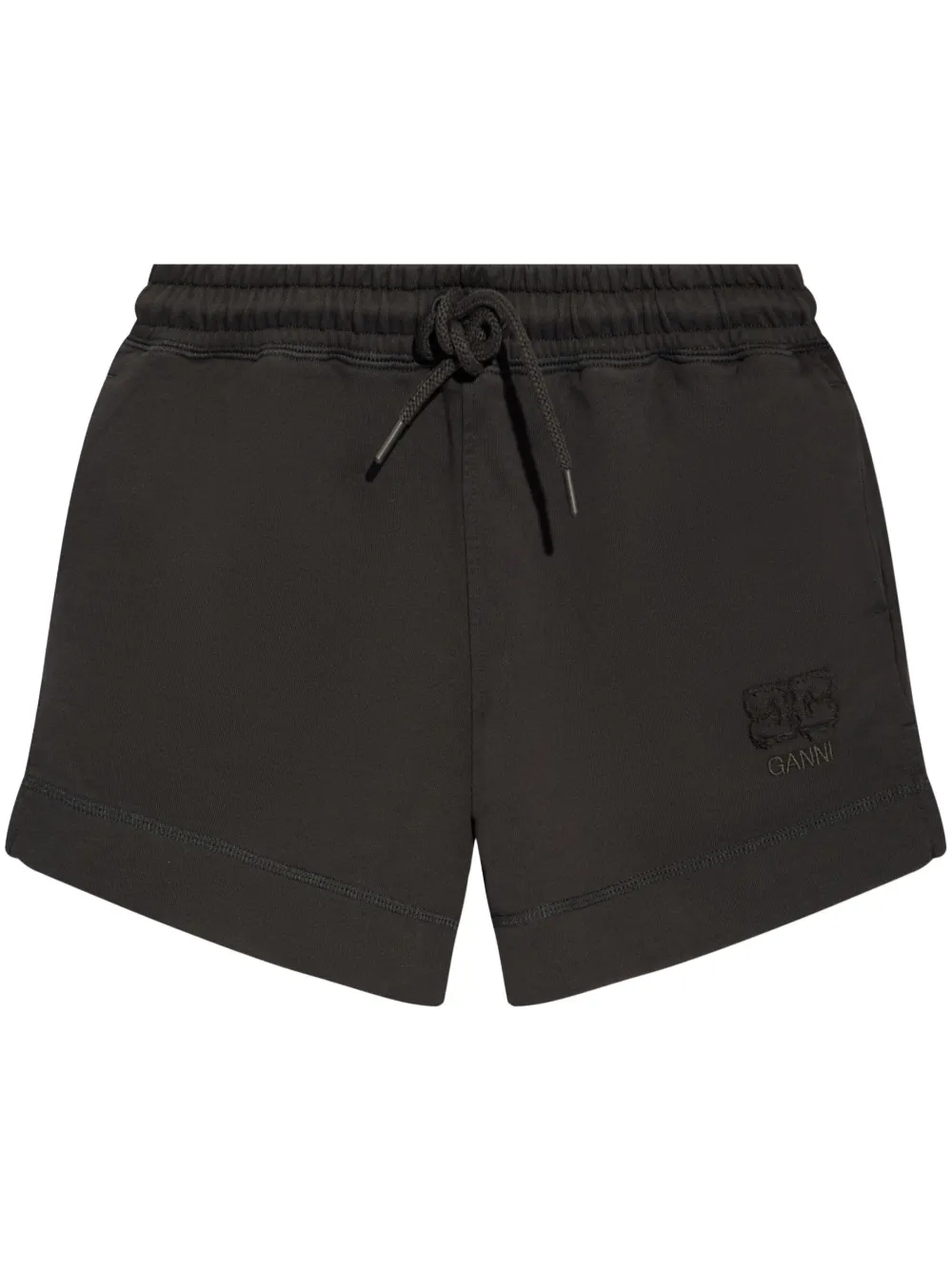 noir coton biologique taille élastique à lien de resserrage logo brodé sur le devant poches plaquées latérales coupe courte