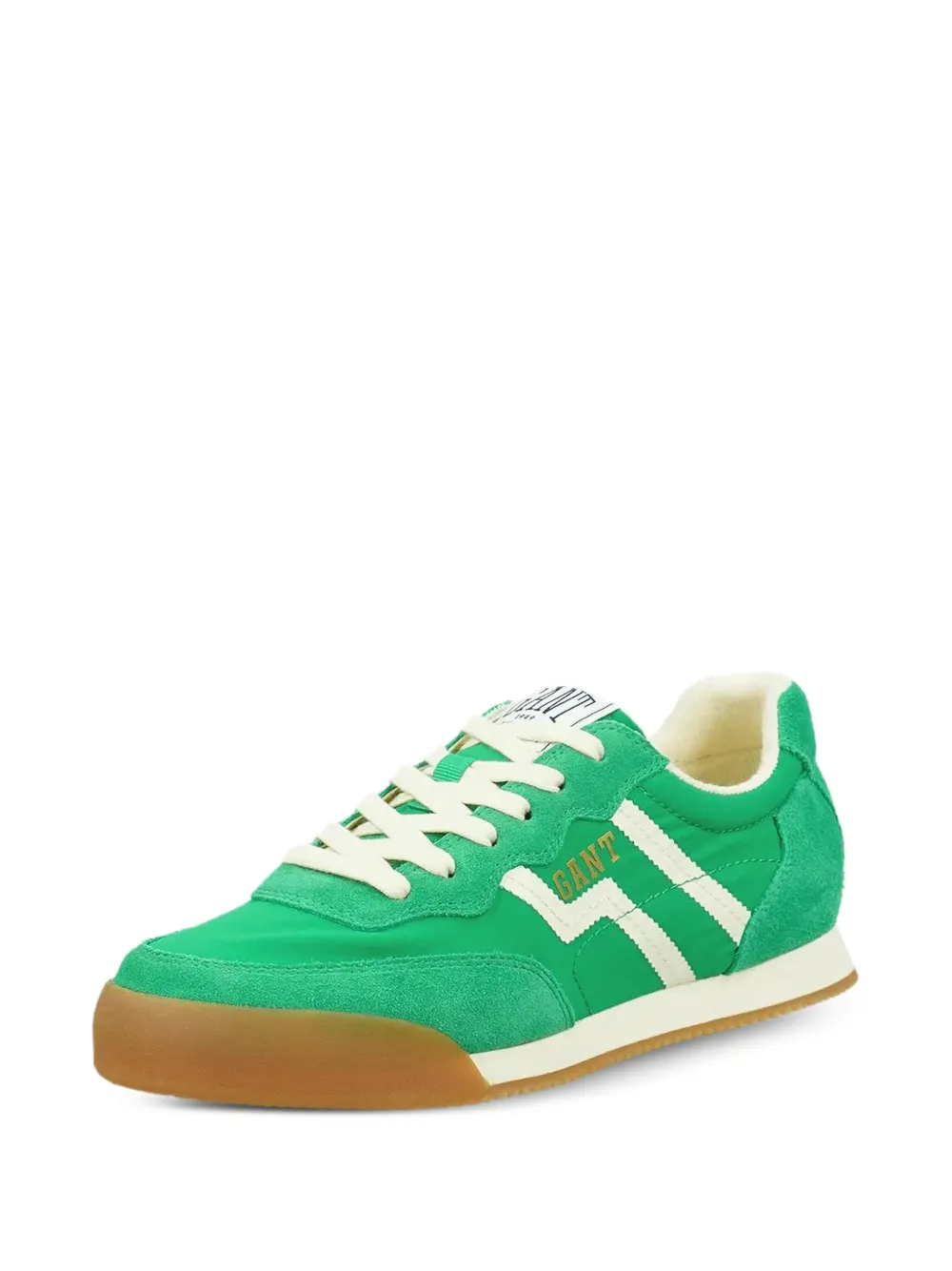 contrasterende strepen levendig design stevige rubberen gomzool vetersluiting decoratieve merkdetails op de tong