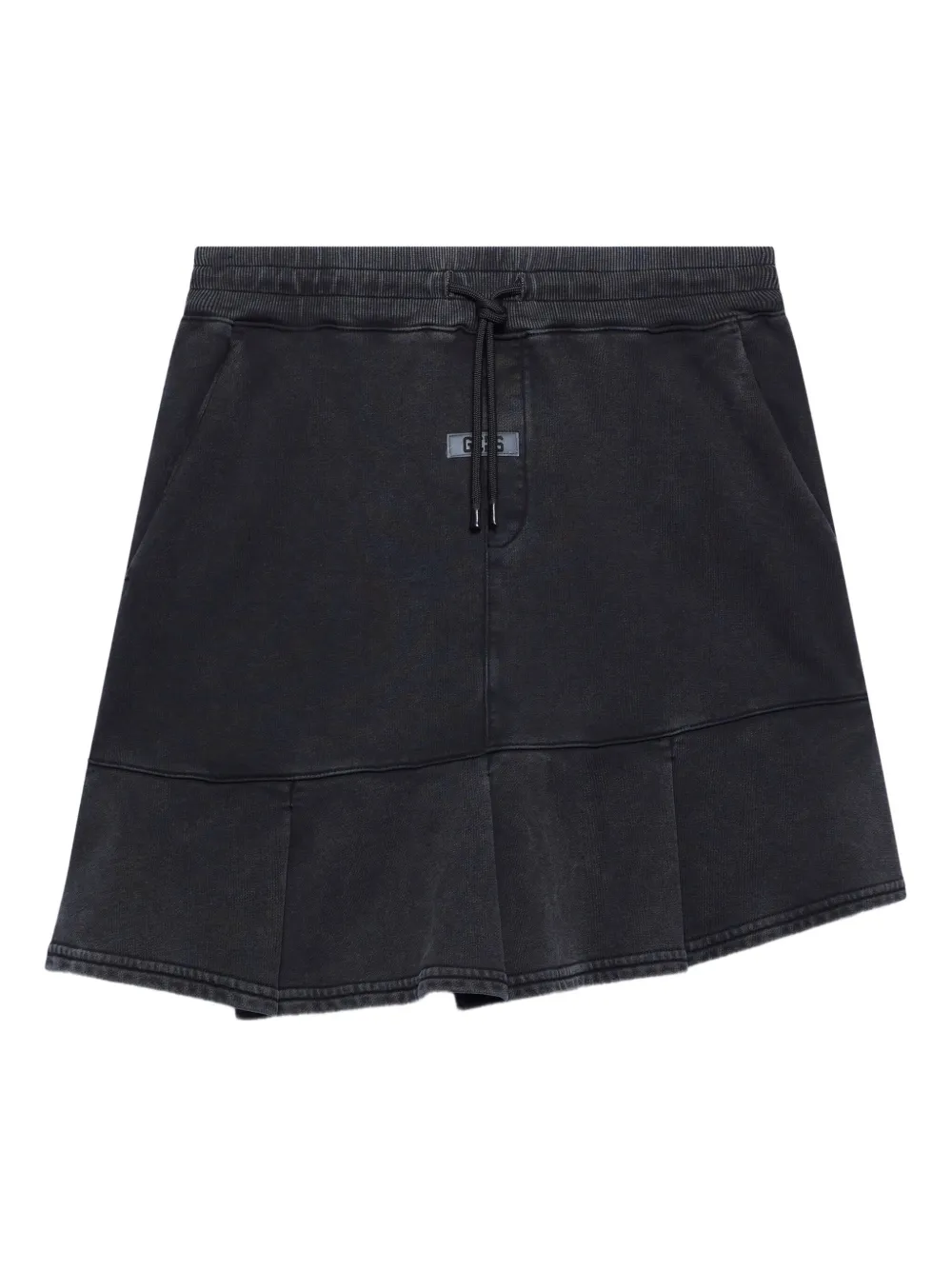 gris foncé taille élastique à lien de resserrage patch logo sur le devant ourlet péplum