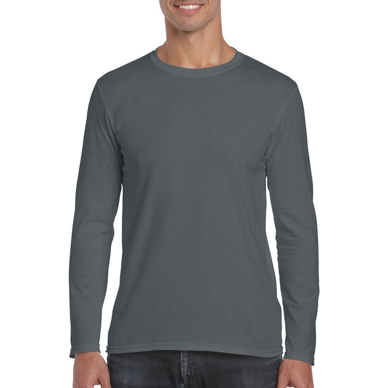 Basic heren t-shirt in de kleur Antraciet met lange mouwen. Dit herenshirt heeft lange mouwen en is gemaakt van 90% katoen en 10% polyester. De mouwen en de onderkant van het shirt zijn afgewerkt met dubbele stiksels. De stof is een kwartslag gedraaid om de middenvouw weg te werken. Kleur: Antraciet (sport Darkgrey). Kwaliteit: 140 grams.