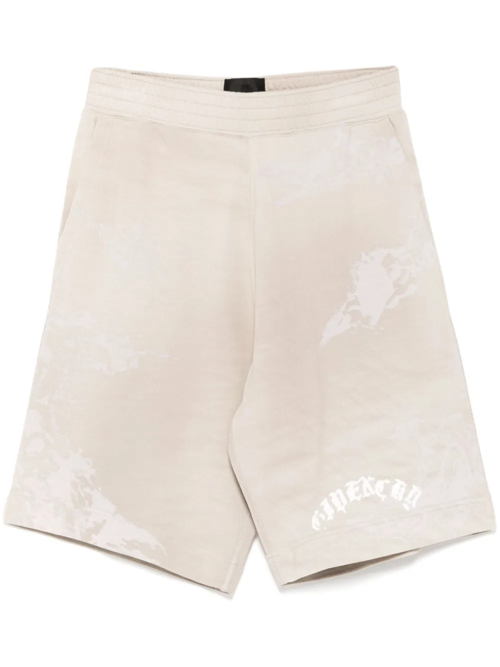 beige sable coton taille élastique à lien de resserrage imprimé graphique intégral poches latérales fendues poches arrière passepoilées