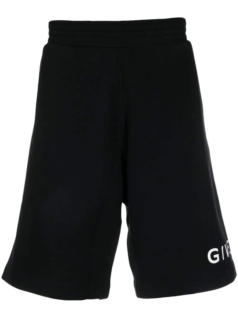 Noir, coton, logo imprimé sur le côté, ceinture élastique, deux poches latérales fendues, poche arrière passepoilée, hauteur genou.