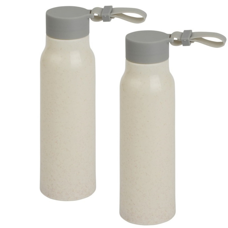 2 Stuks glazen waterfles/drinkfles in het beige met kunststof schroefdop en handvat. Afmeting: ca. D6 x H20 cm. Inhoud: ca. 300 ml, 30 cl. Gewicht: 247 gram. Materiaal: verhard glas. BPA-vrij: ja. Geschikt voor magnetron: nee. Geschikt voor vaatwasser: nee. Geschikt voor vriezer: ja. Sportfles of bidon.