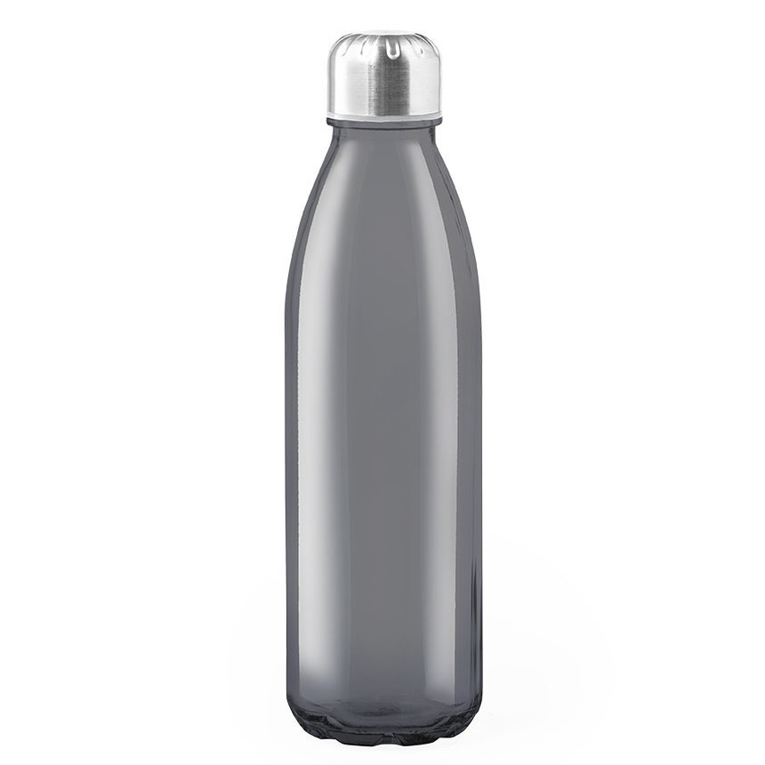 Glazen waterfles/drinkfles/sport bidon in het zwart transparant met RVS dop. Afmeting: ca. D7 x H26 cm. Inhoud: ca. 650 ml, 65 cl. Gewicht: ca. 370 gram. Materiaal fles: verhard glas. BPA-vrij: ja. Geschikt voor magnetron: nee. Geschikt voor vaatwasser: ja, de dop niet. Geschikt voor vriezer: ja. Wordt geleverd in een kartonnen doosje.