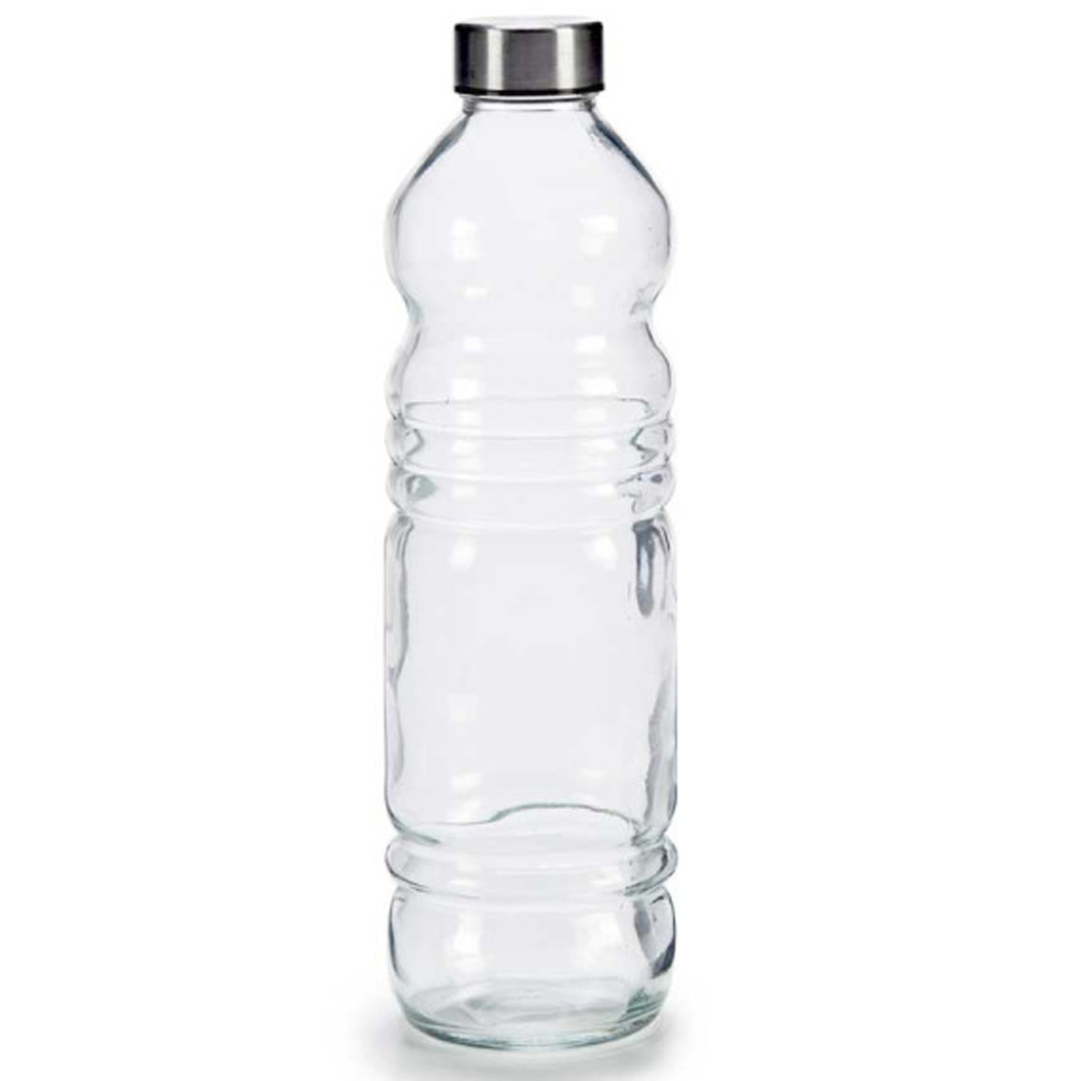 Glazen waterfles/drinkfles AQUABOOGIE, in de kleur helder transparant voorzien van relief met RVS dop 1100 ml. Afmeting: ca. D8 x H31 cm. Inhoud: ca. 1100 ml, 100 cl. Gewicht: ca. 400 gram. Materiaal fles: verhard glas. Geschikt voor magnetron: nee. Geschikt voor vaatwasser: ja (max. 50 graden) de dop niet. Geschikt voor vriezer: ja. Sport bidon flessen.
