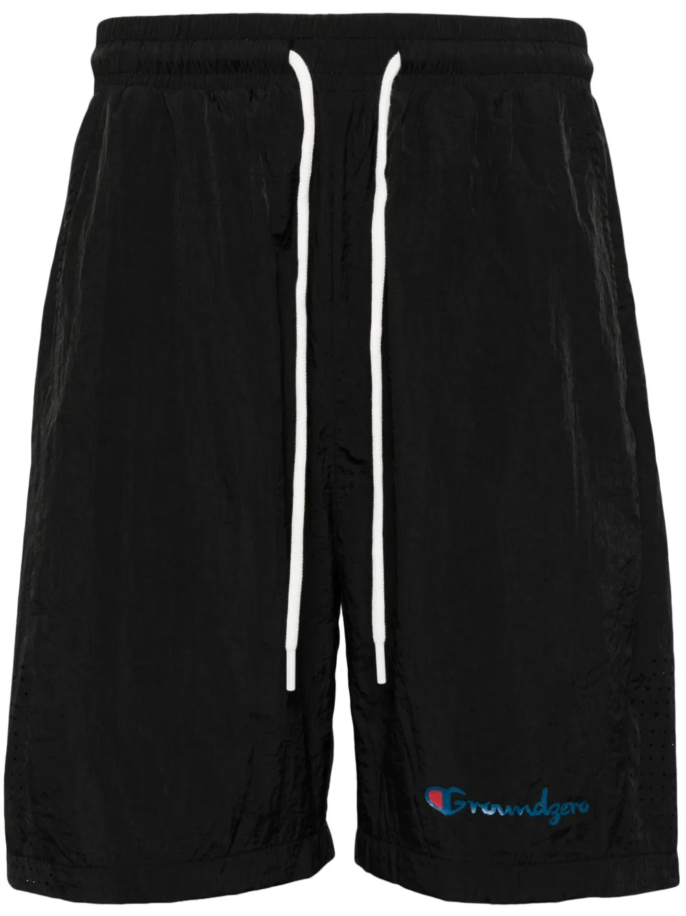 design perforé taille élastique à lien de resserrage logo imprimé sur le coté et à l’arrière poches latérales fendues poche arrière passepoilée longueur au dessus du genou ourlet droit doublure en résille