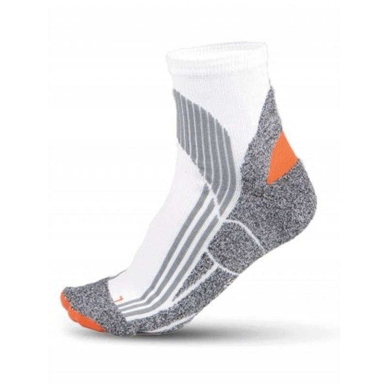 Running hardloop sportsokken voor volwassenen in maat 43-46. Speciale halflange sokken die bescherming bieden tegen vocht. De sokken zijn ademend en sneldrogend. Ergonomische ondersteuning en bescherming voor de voeten dankzij een speciale tricot. Materiaal: 78% polyester, 19% polyamide en 3% elastane.