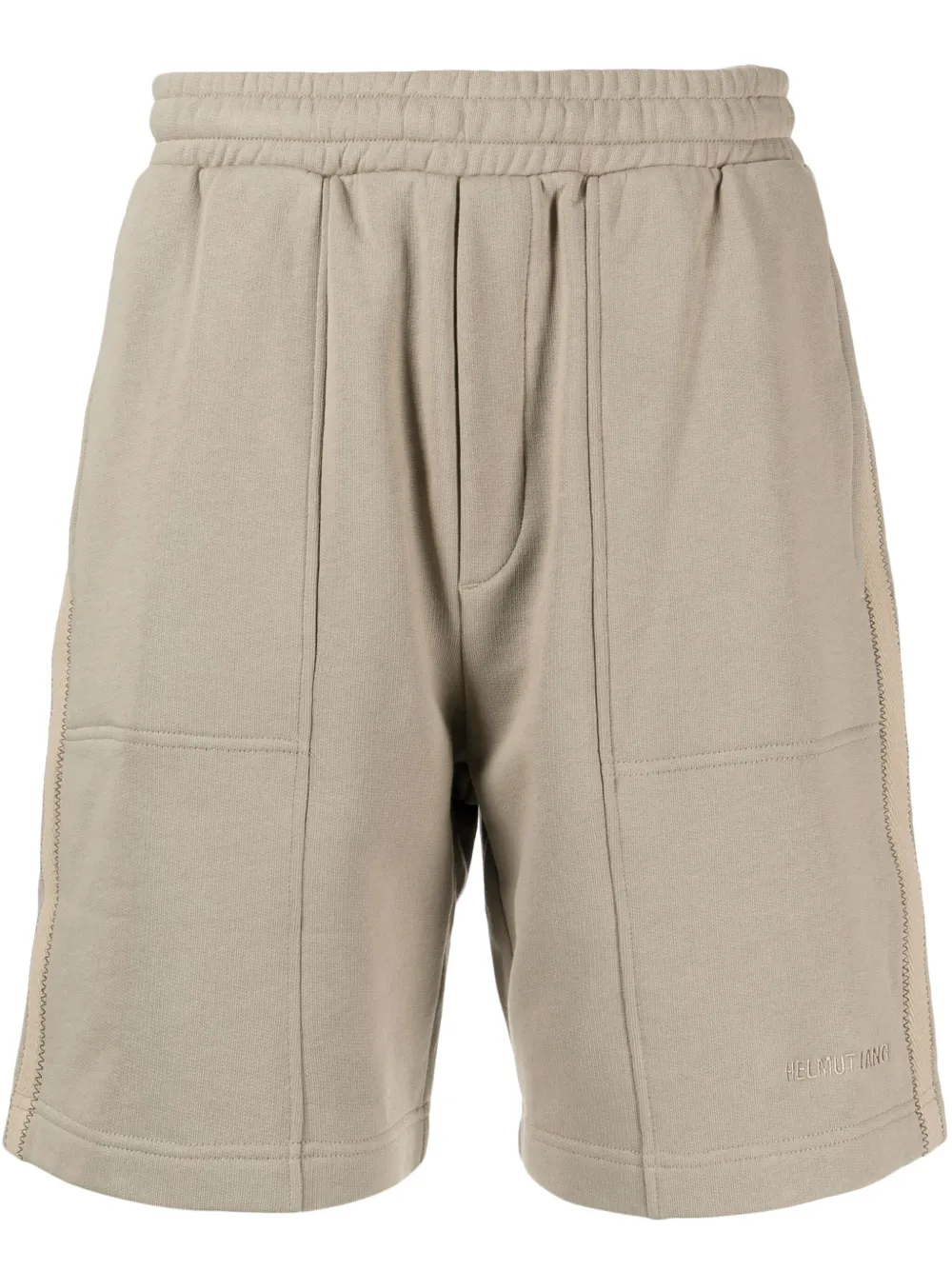 brun taupe coton design à empiècements logo brodé sur la poitrine détail de bande coutures contrastantes longueur au dessus du genou poches latérales fendues poche arrière plaquée ceinture élastique