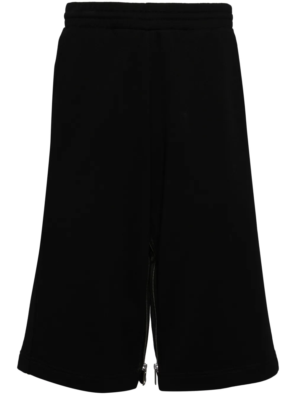 noir coton biologique texture jersey détail customisable fermeture zippée sur le côté ornements argentés taille élastique à lien de resserrage poches latérales fendues poches arrière plaquées coupe ample longueur au dessous du genou doublure French en éponge