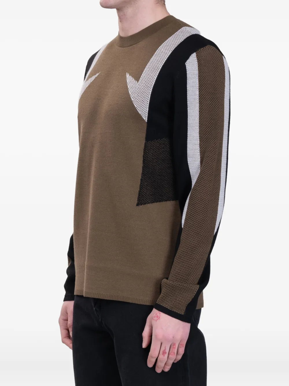 tabakbruin design met colourblocking ronde hals lange mouwen
