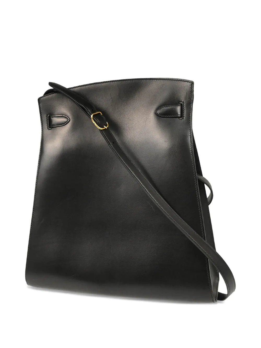 circa 1992 zwart box kalfsleer verstelbare schouderband kenmerkende bandjes twist-lock sluiting hoofdvak binnenvak met ritssluiting steekvak aan binnenkant logo aan binnenkant metalen voetjes goudkleurig materiaal Staat: GOED. Dit item is eerder in iemands bezit geweest en gebruikt, maar verkeert in goede staat met minimale gebruikssporen. Dit kan vervaging van materiaal of plating en krassen omvatten.