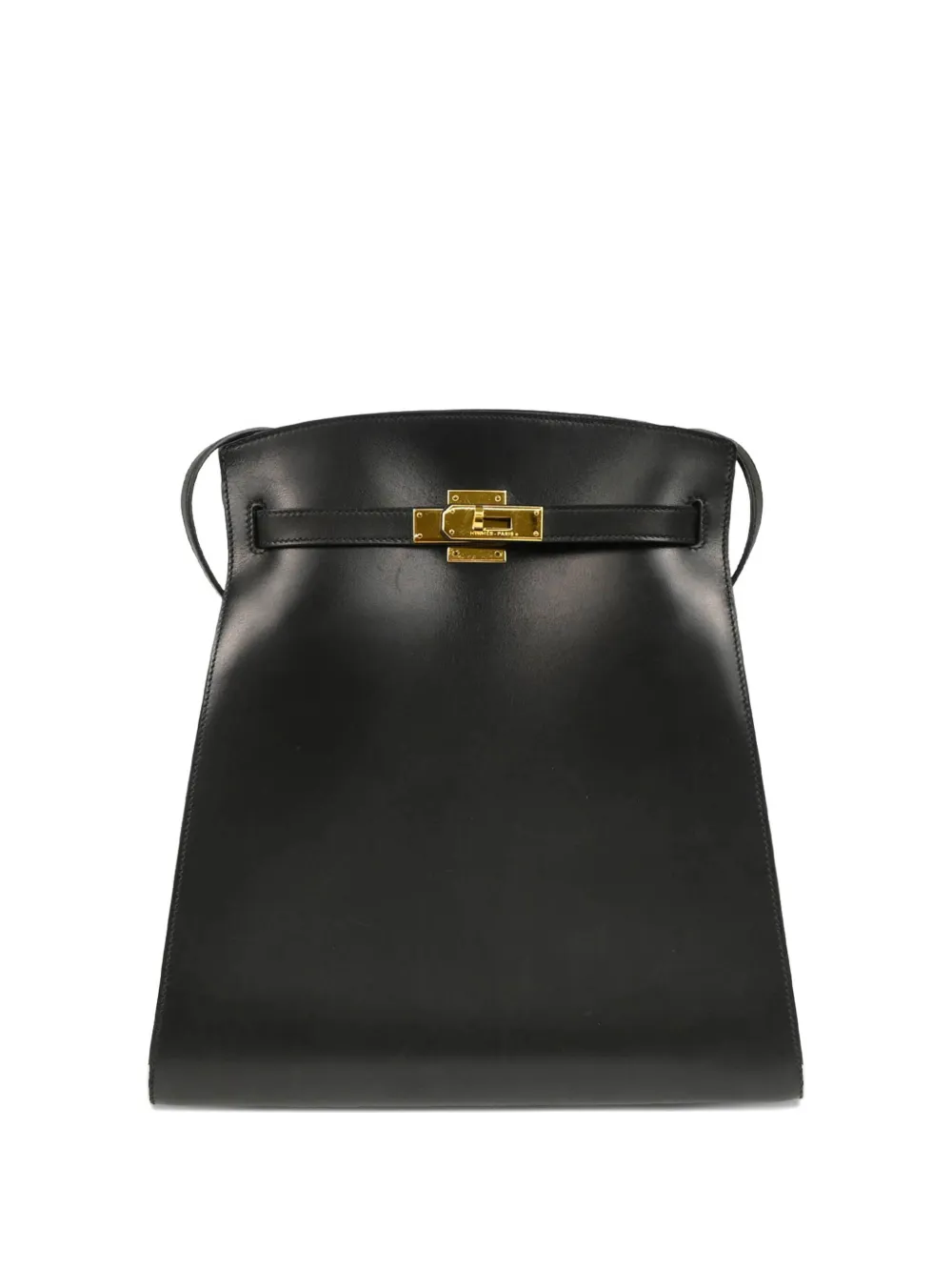 vers 1992 noir cuir de veau bride ajustable portée épaule sangles signature fermoir pivotant compartiment principal poche intérieure zippée poche intérieure plaquée logo imprimé à l’intérieur pieds en métal finitions en métal doré État : BON. Cet article pre-owned est en bon état et présente des signes d’usure minimes. Il peut s’agir d’une décoloration de la matière ou du revêtement ou des rayures.