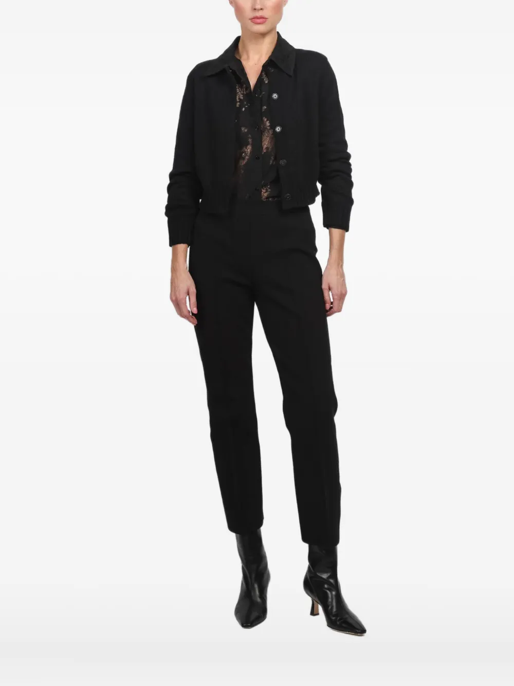 noir cachemire mélangé fermeture dissimulée sur le devant manches longues ourlet côtelé