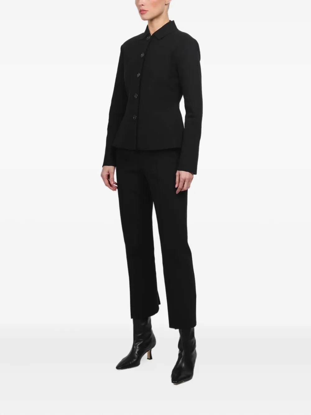zwart kraag knoopsluiting aan de voorkant lange mouwen rechte zoom discrete stiksels