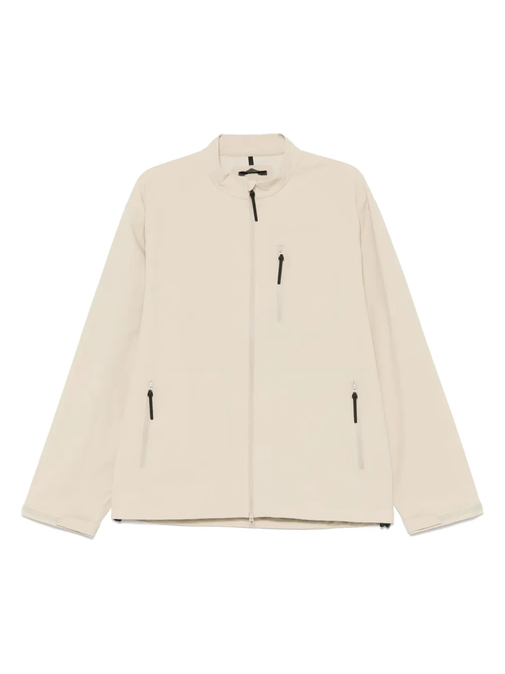 beige clair fermeture zippée à double sens sur le devant poche poitrine zippée deux poches latérales zippées poignets à fermeture scratch