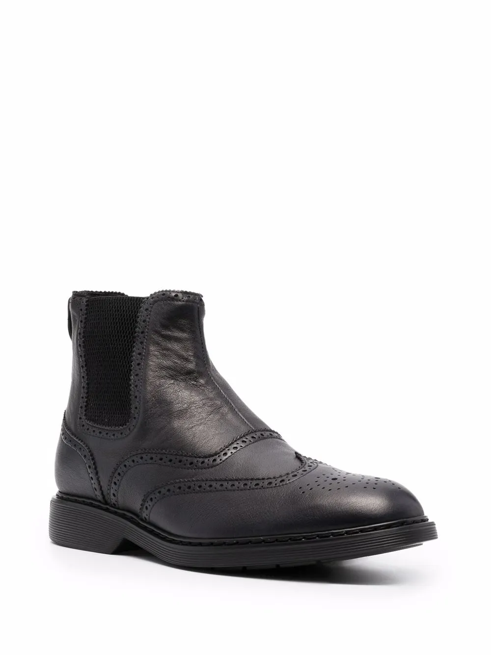 Geperforeerd detail, elastische inzetstukken aan de zijkant, amandelvormige neus, slip-on stijl, lage hak en rubberen zool.