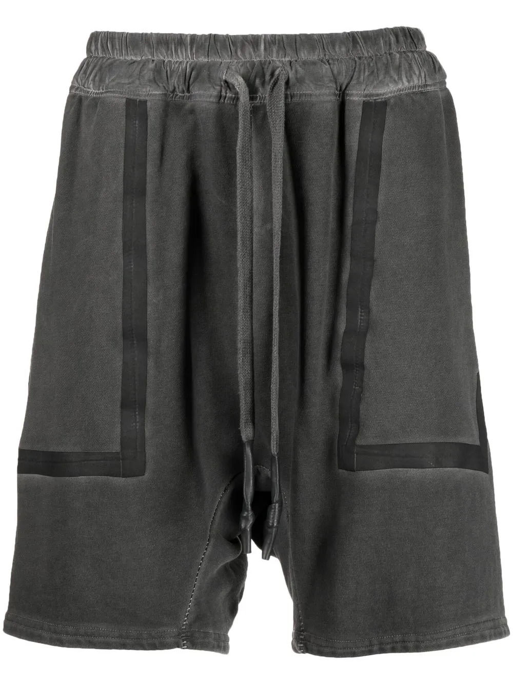 Gris, coton biologique, effet délavé, taille élastique à lien de resserrage, poches latérales fendues. .