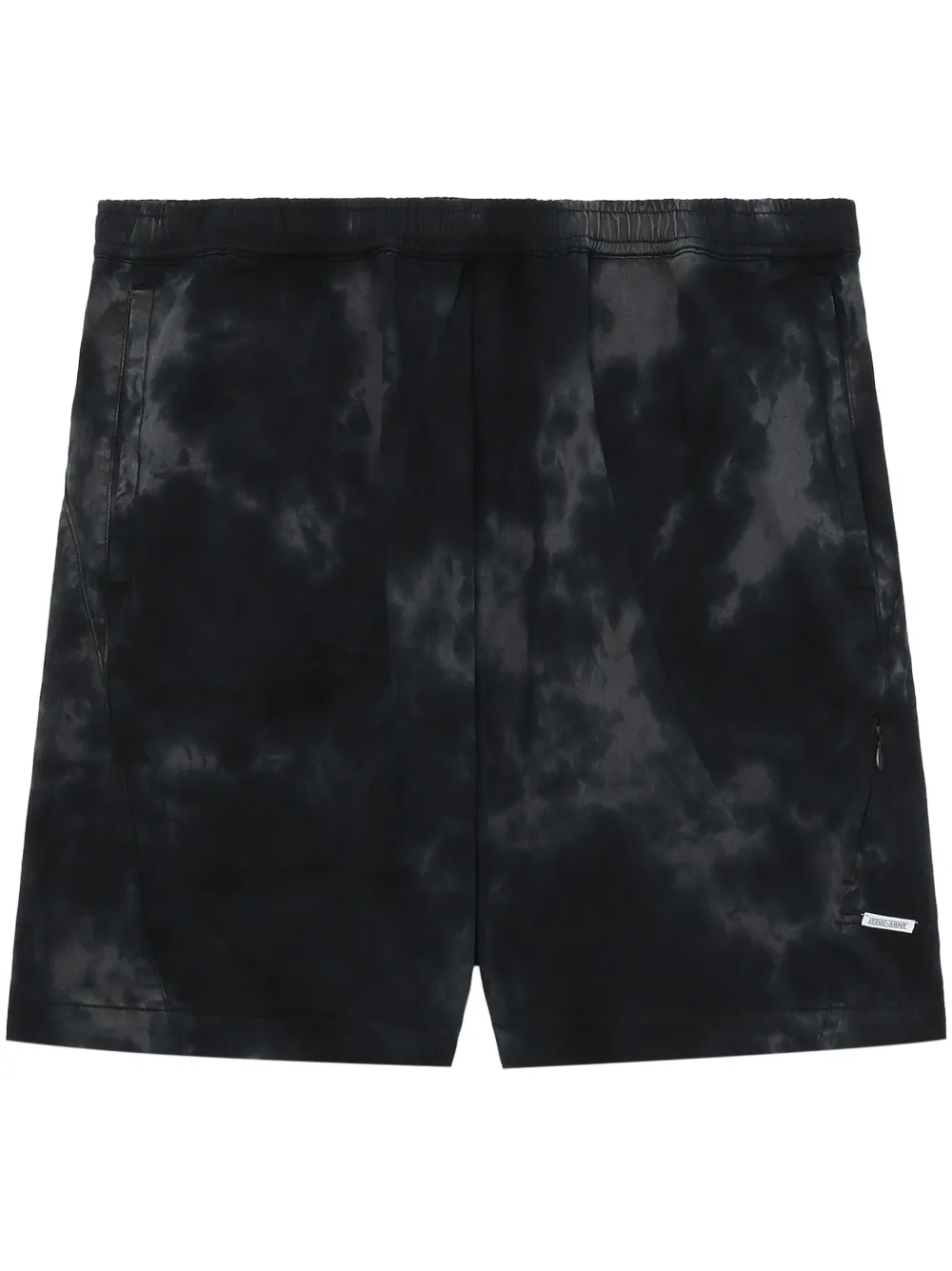noir coton motif tie-dyeappliqué logo ceinture élastique deux poches latérales zippées longueur genou