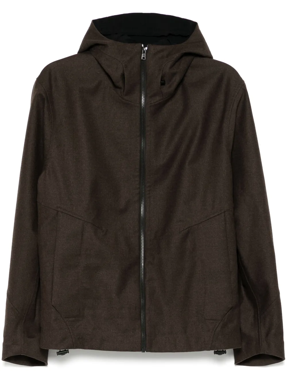 brun cèdre fermeture zippée devant capuche à lien de resserrage deux poches latérales zippées ourlet à lien de resserrage
