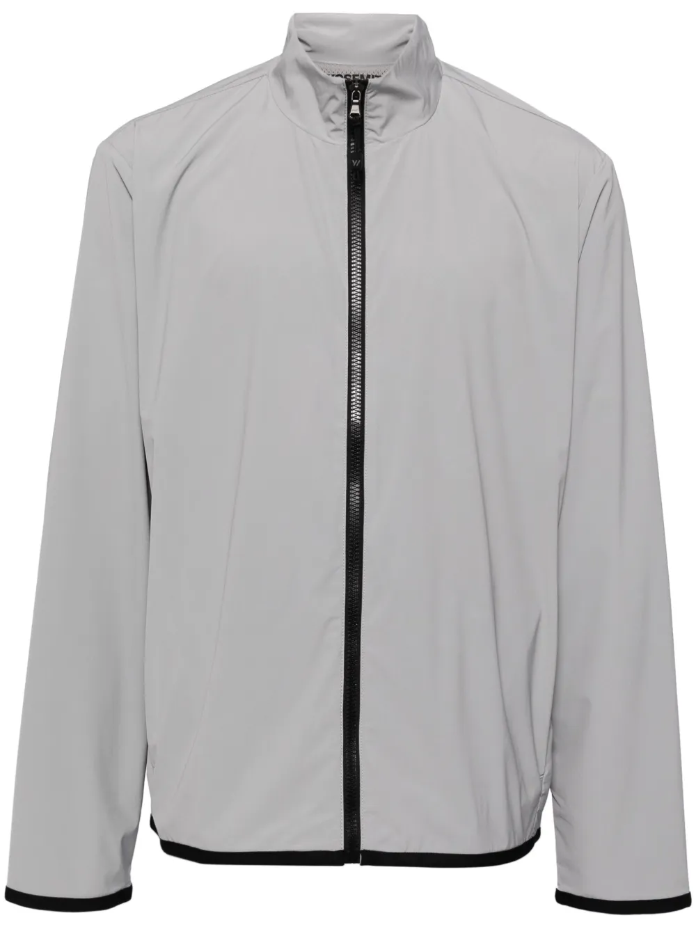 gris bords contrastants fermeture zippée devant manches longues poches plaquées latérales doublure en résille ourlet droit