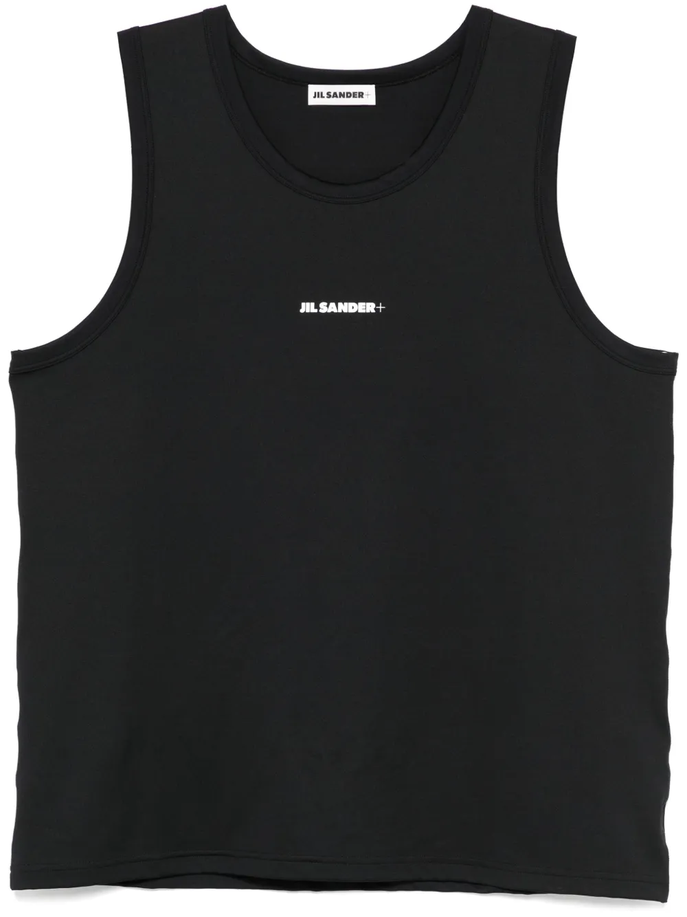 noir logo imprimé sur le devant col rond emmanchures basses design sans manches