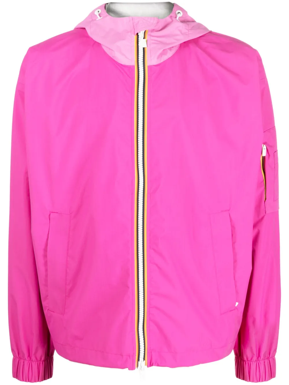 Rose fuchsia, bordures rayées, capuche classique, fermeture zippée devant, manches longues, poche plaquée sur la manche, deux poches latérales zippées, ourlet droit. Lorsque vous passez commande, veillez à prendre en compte que les mensurations indiquées pour cet article unisexe correspondent à la taille homme.