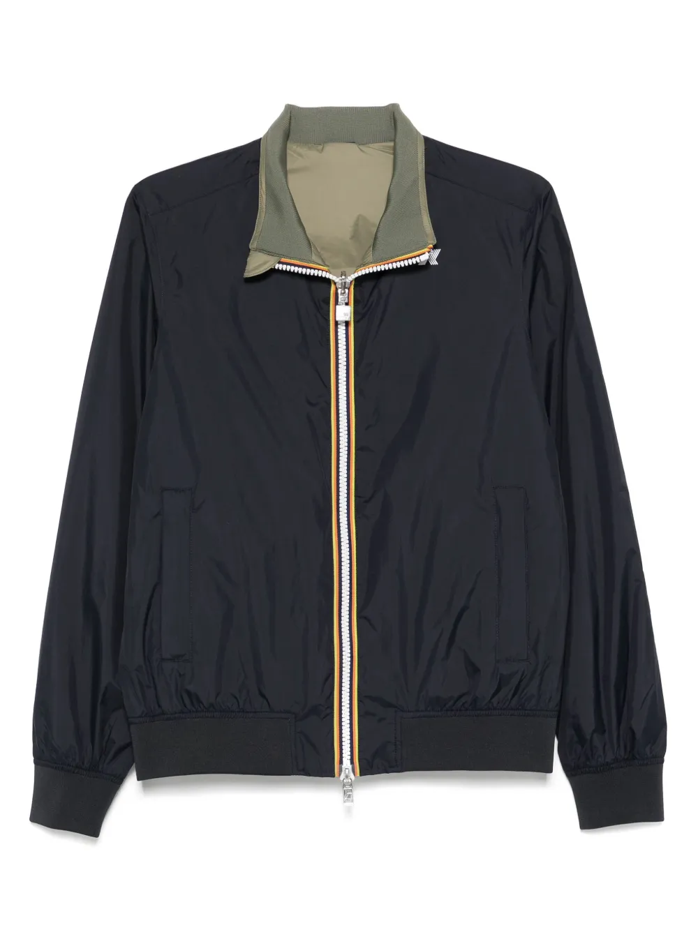 bleu nuit fermeture zippée à double sens sur le devant ourlet et bords nervurés rabat tempête design réversible