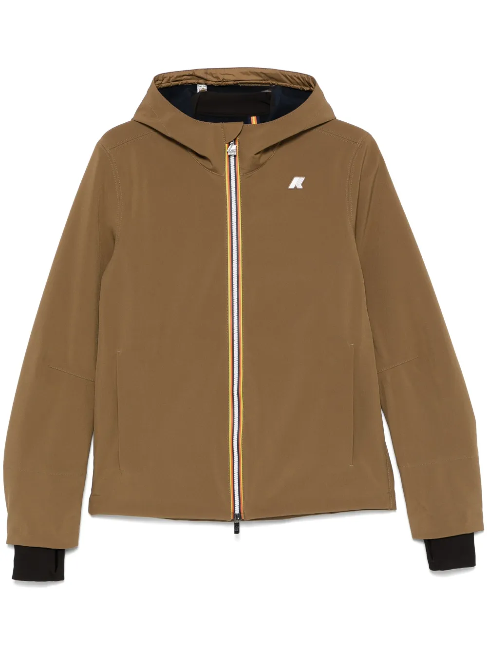 marron camel fermeture zippée à double sens sur le devant capuche classique patch poitrine à logo manches longues manches à poignets resserrés passe-pouces deux poches latérales zippées doublure en polaire ourlet à lien de resserrage
