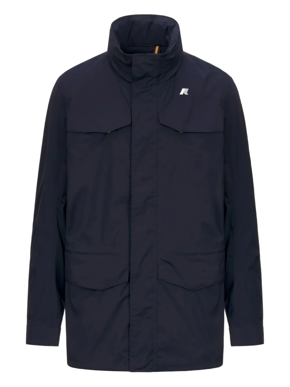 bleu marine poches multiples col montant fermeture zippée poignets boutonnés