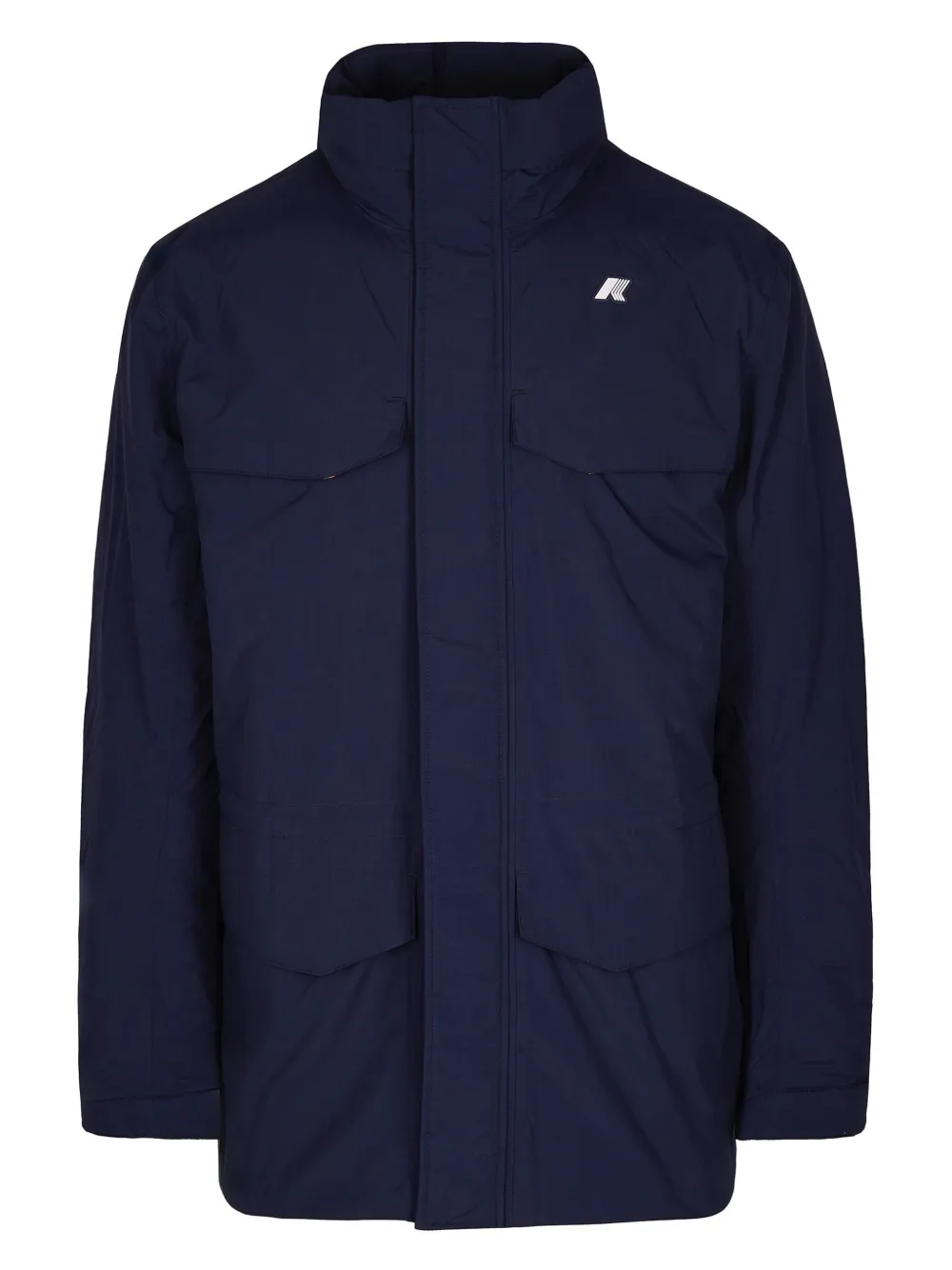 bleu marine deux poches plaquées avant col montant fermeture zippée patch logo